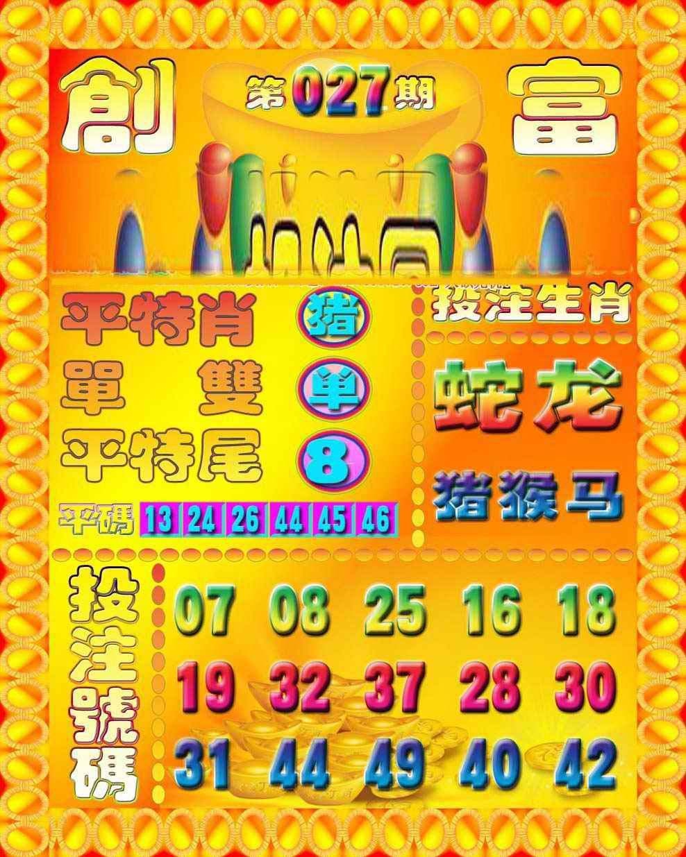 027期:香港六合彩『创富投注图』