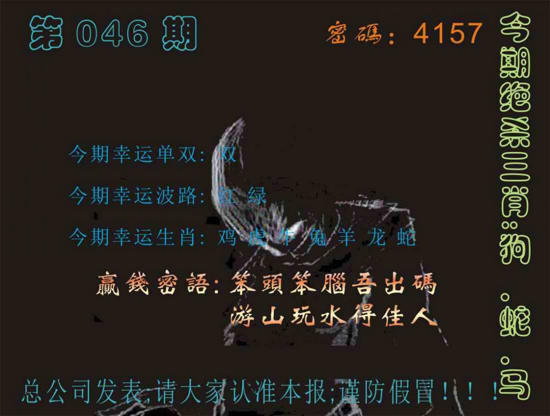 046期: 香港六合彩 『黄大仙灵码』已更新