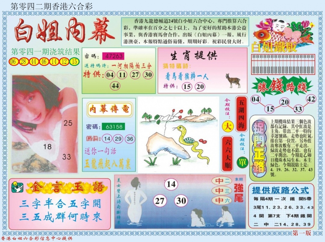 042期: 香港六合彩 『白小姐内幕B』已更新
