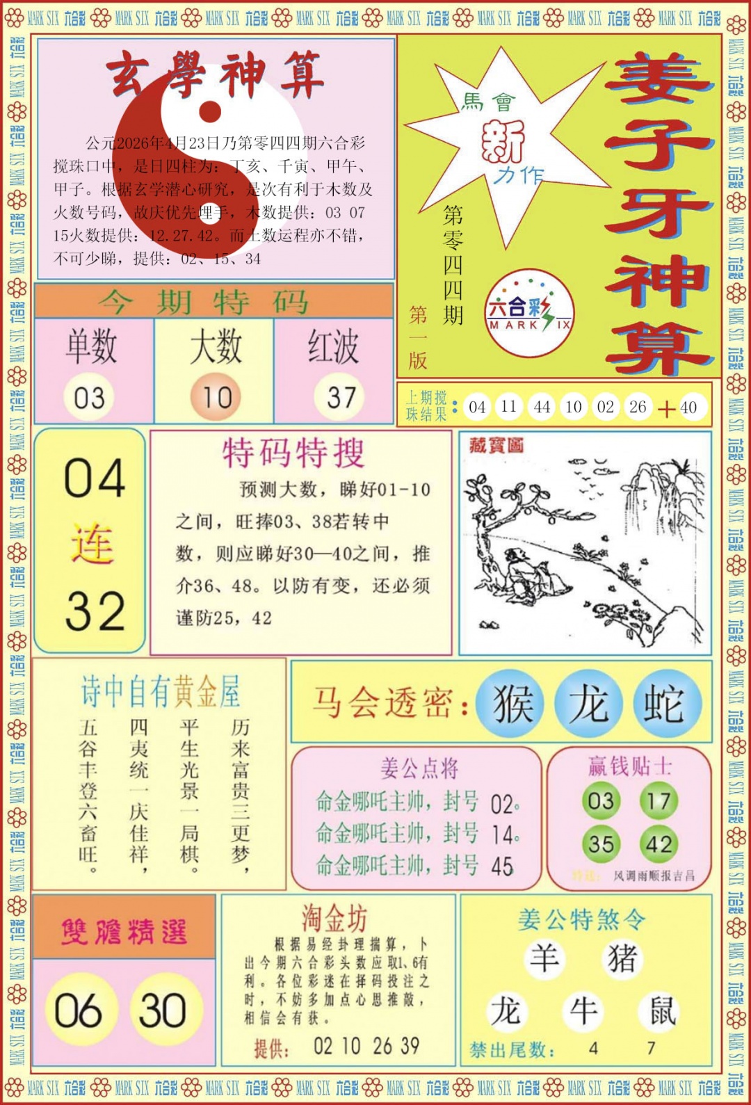044期: 香港六合彩 『姜子牙神算A』已更新