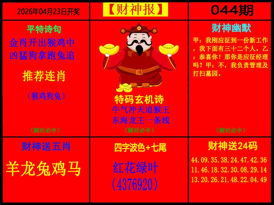 044期: 香港六合彩 『黄大仙灵码』已更新