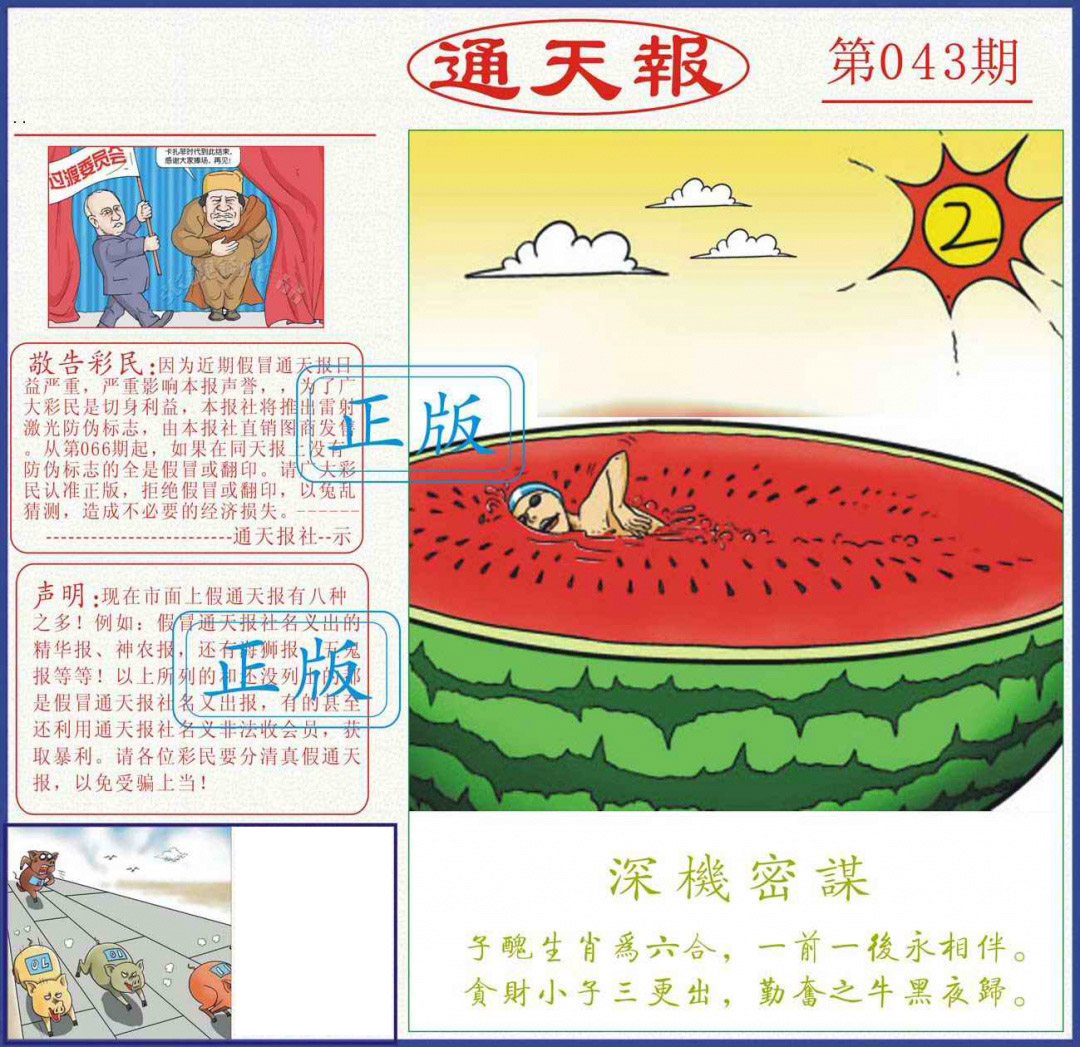 043期: 香港六合彩 『香港猪哥报』已更新
