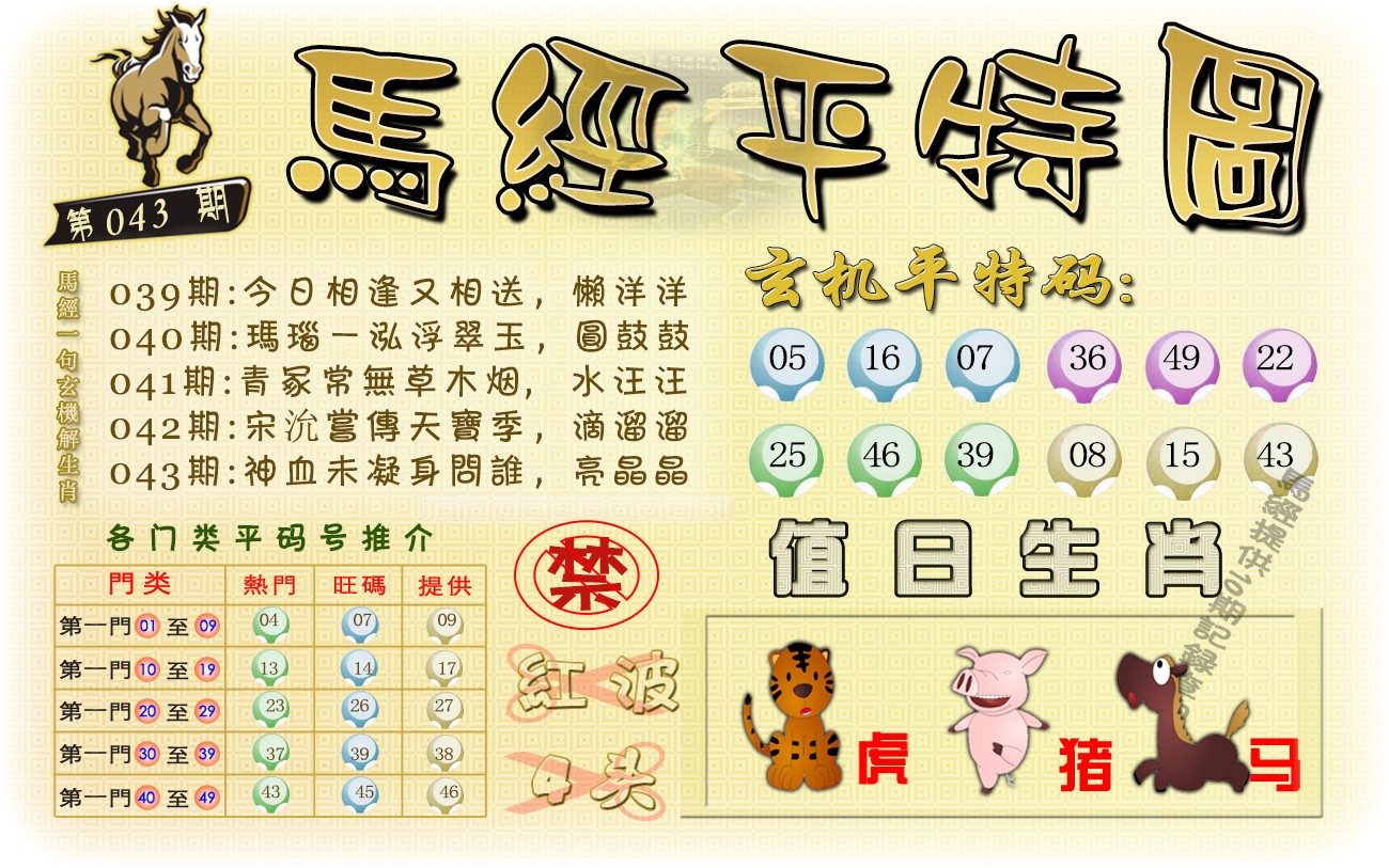 043期: 香港六合彩 『黄大仙灵码』已更新