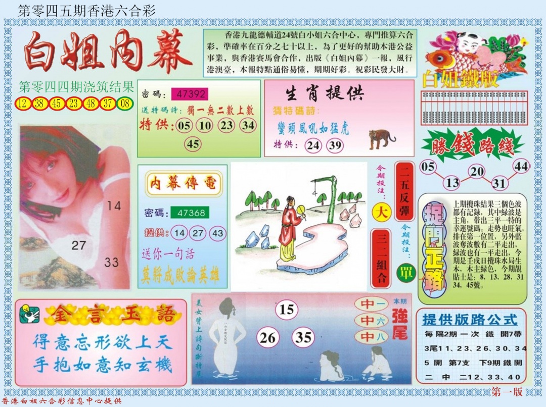 045期: 香港六合彩 『白小姐内幕B』已更新