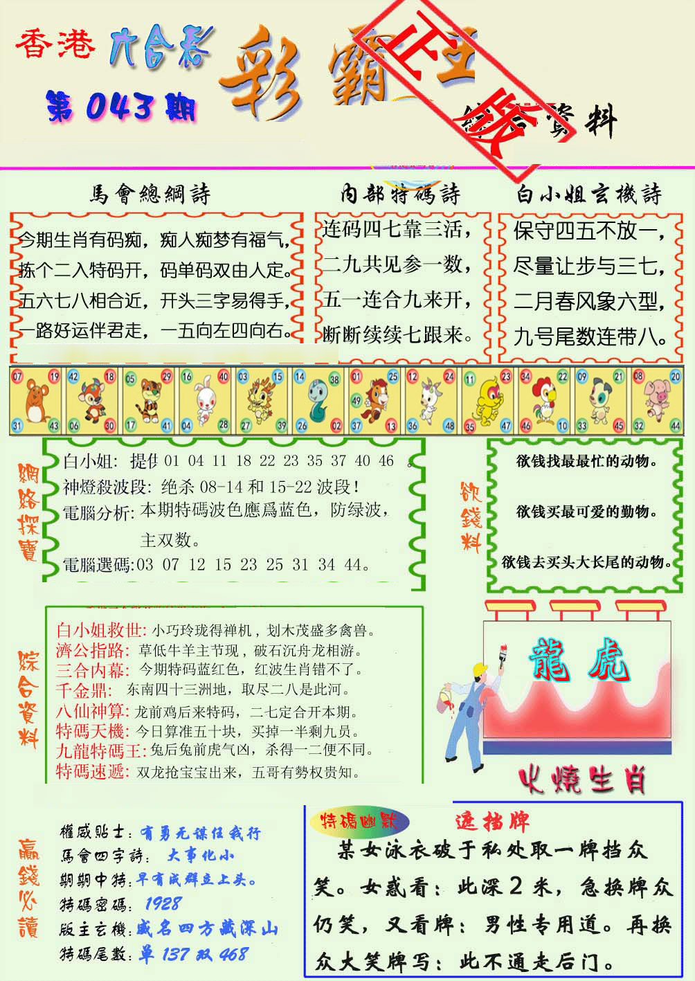 043期: 香港六合彩 『刘半仙哑谜』已更新
