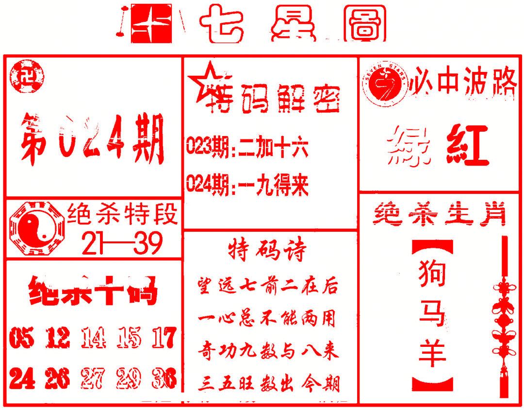 024期: 香港六合彩 『七星图 A图』已更新